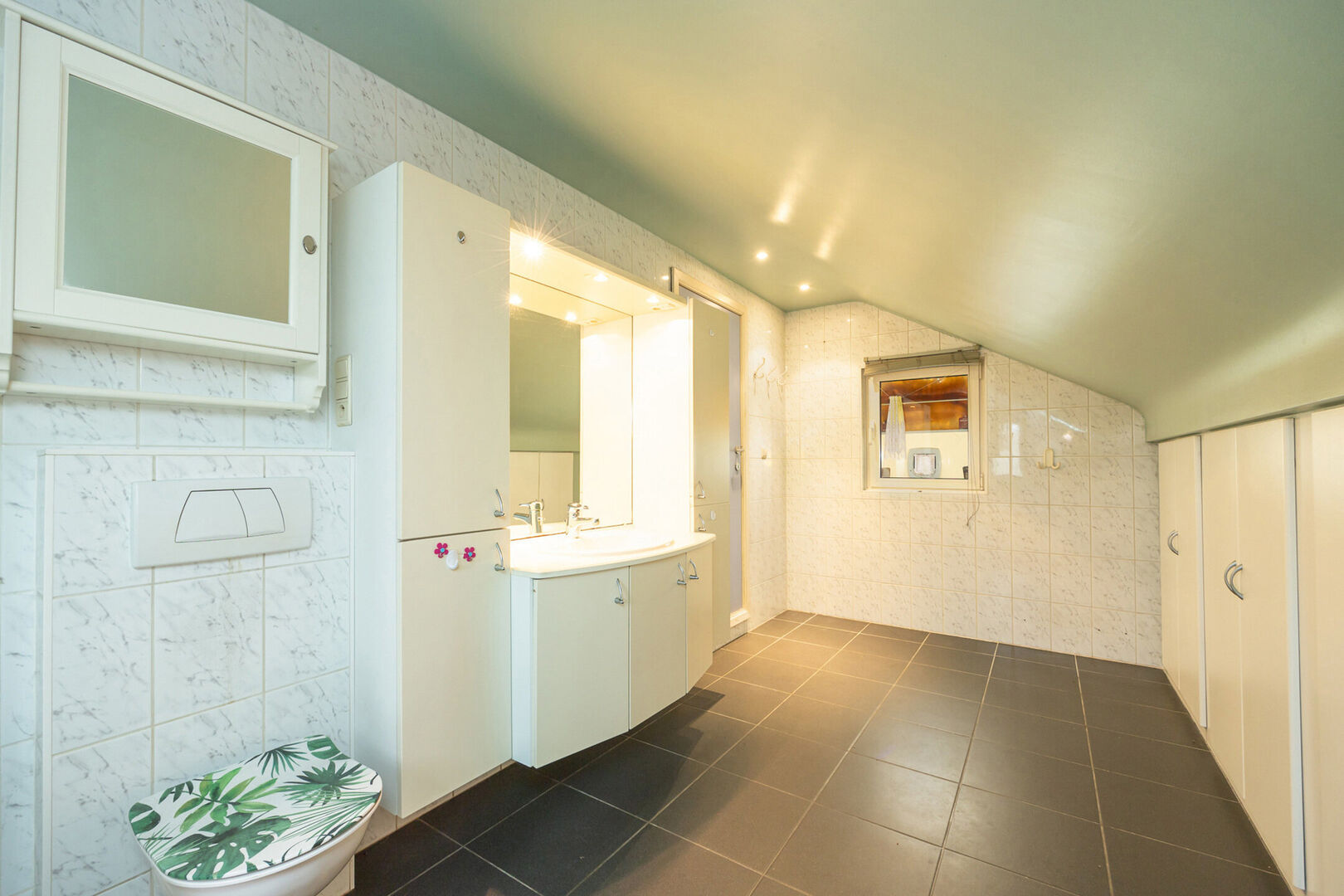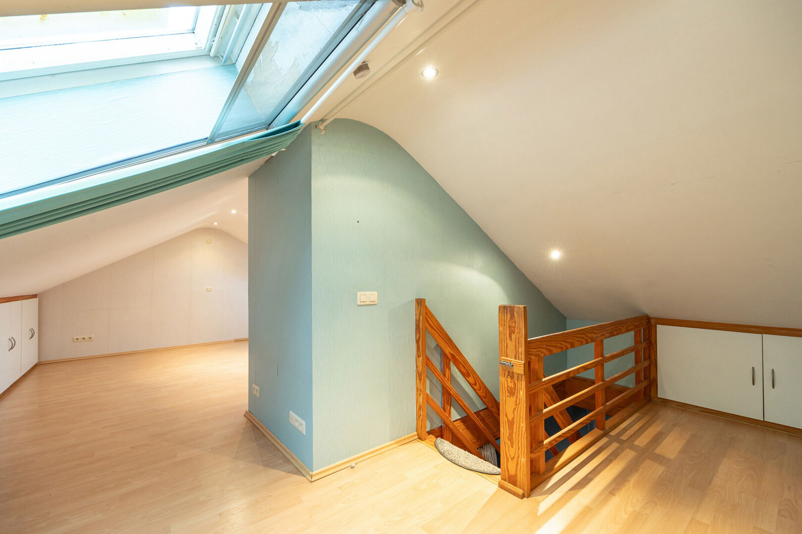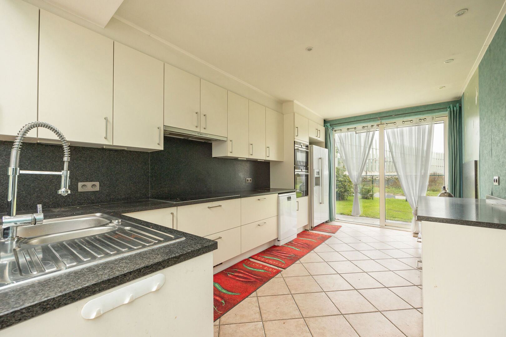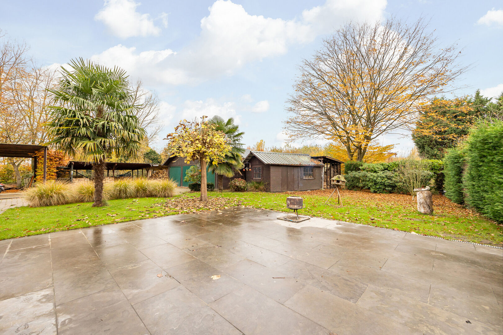 De zonnige tuin is een echte troef en beschikt over een ruim terras, een tuinhuis en een vijver. De tuin is rechtstreeks toegankelijk vanuit zowel de keuken als de veranda, wat zorgt voor een optimaal binnen-buitengevoel.Dankzij de geluidswanden langs de autostrade wordt omgevingsgeluid vrijwel volledig gedempt, waardoor je in en rond de woning heerlijk rustig kan vertoeven.