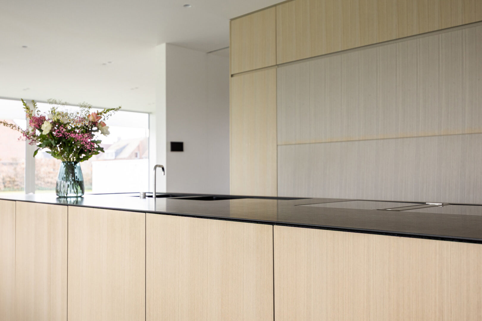 De leefkeuken is een droom voor elke hobbykok met zijn hoogwaardige toestellen, veel opbergruimte en een stijlvol kookeiland. Ook in de keuken is het mogelijk een rustige sfeer te creëren aangezien zowat alle toestellen aan het zicht kunnen worden onttrokken.