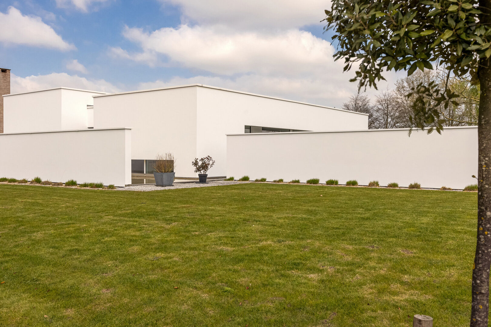 De woning is tot in de puntjes afgewerkt met oog voor detail: doorlopende terrasvloeren creëren een harmonieus lijnenspel van binnen naar buiten, alle ramen aan de zonnige zijde zijn voorzien van zowel binnen- als buitenscreens, en in elke ruimte is een discreet schilderij ophangsysteem geïntegreerd.