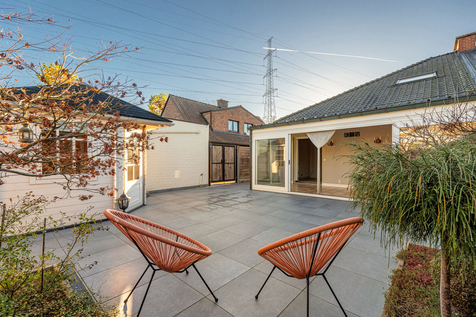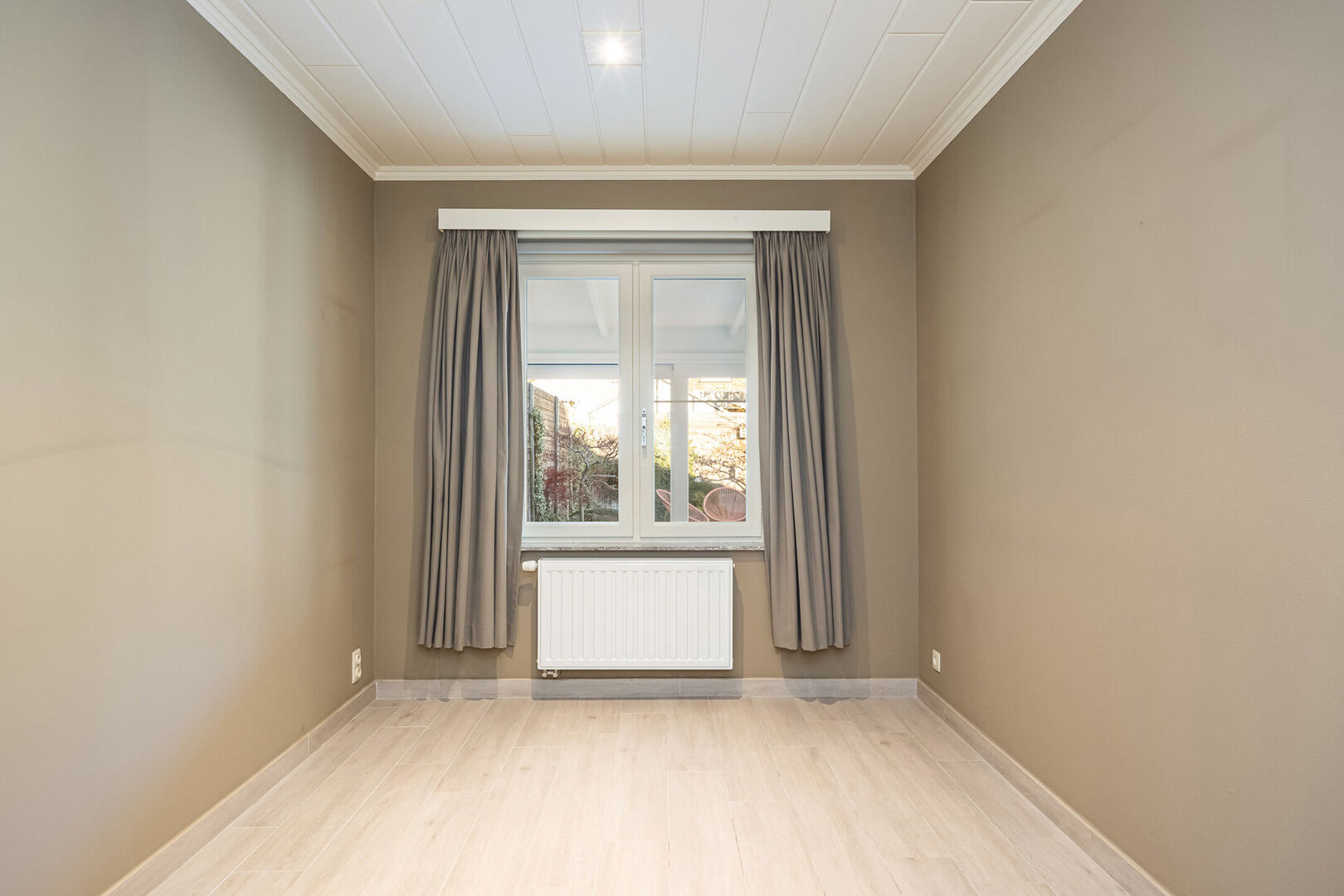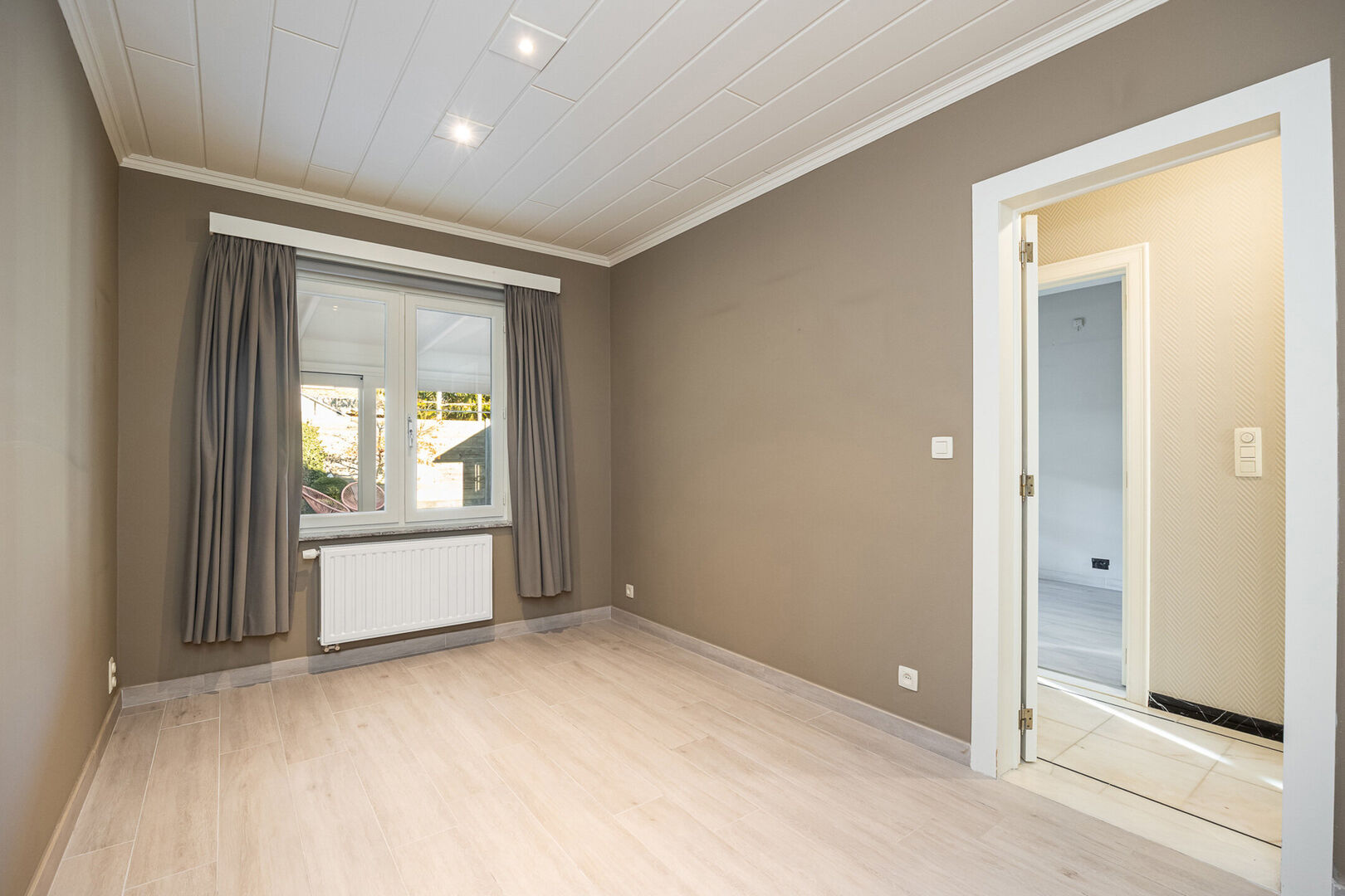 Verder zijn er twee volwaardige slaapkamers en een derde kamer die momenteel ingericht is als bureauruimte. Deze geeft via een dubbele deur uit op de zonnige veranda, waar dankzij twee grote schuiframen binnen en buiten naadloos in elkaar overlopen. Achter de veranda ligt een groot terras met tuinhuis, voor wie meer houdt van groen kan dit onthard worden en ingericht als een gezellig tuintje.