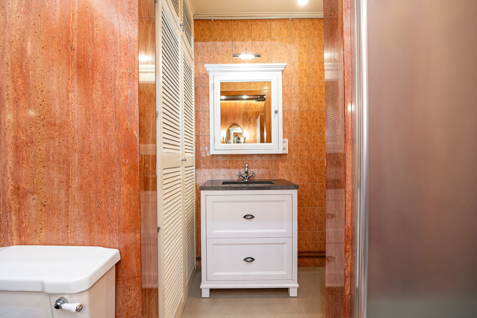 De woning beschikt over een luxueuze badkamer met dubbele lavabo, ruime inloopdouche en toilet. Tevens is er plaats voorzien voor wasmachine en droogkast.