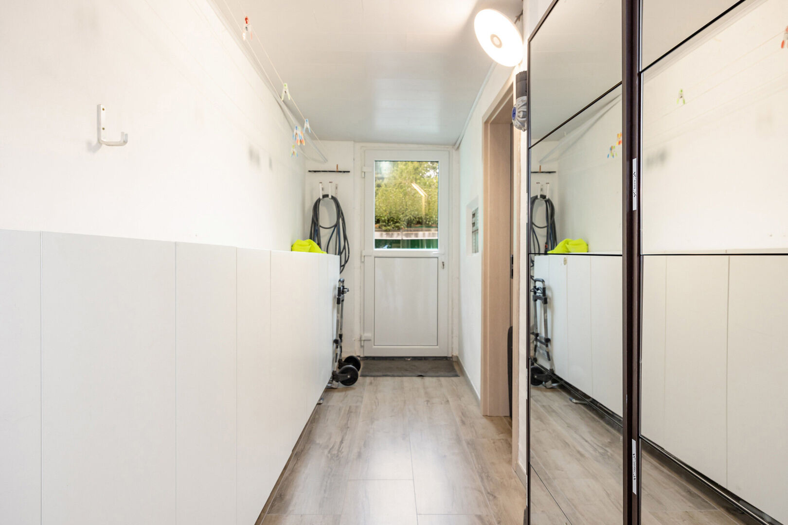 Deze karaktervolle woning verwelkomt je meteen met een charmante inkomhal .Achter de eerste deur bevindt zich een ruime kamer die je naar eigen wens kan inrichten als slaapkamer, bureau of tweede leefruimte. Verder door kom je in de gezellige zithoek die naadloos aansluit op de keuken. Naast de keuken is er een praktische wasplaats/bijkeuken, en achteraan vind je de badkamer.