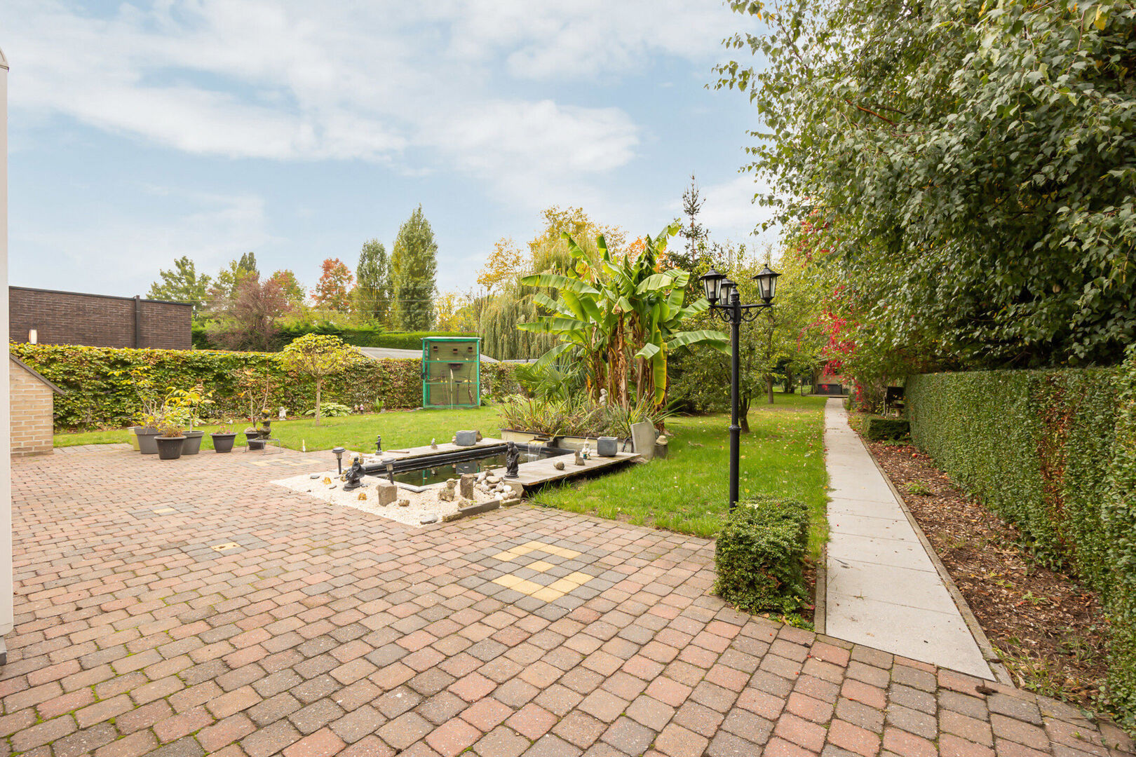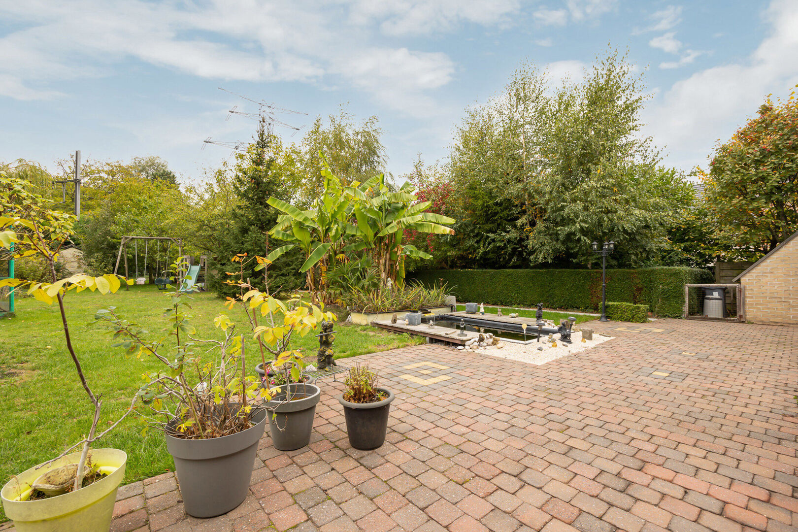 De tuin achteraan is volledig omheind en beschikt over een terras, tuinhuis en vijver. Dankzij de zuidgerichte oriëntatie geniet u hier van veel zon.