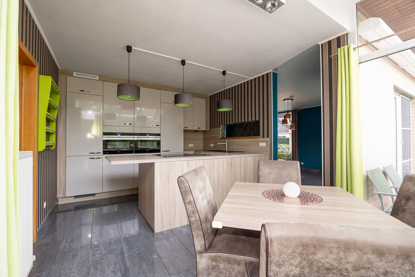 Bij het binnenkomen vindt u een inkomhal met apart gastentoilet. De lichtrijke leefruimte biedt voldoende plaats voor een zit- en eetgedeelte. Aansluitend bevindt zich de praktische keuken, uitgerust met alle nodige toestellen.