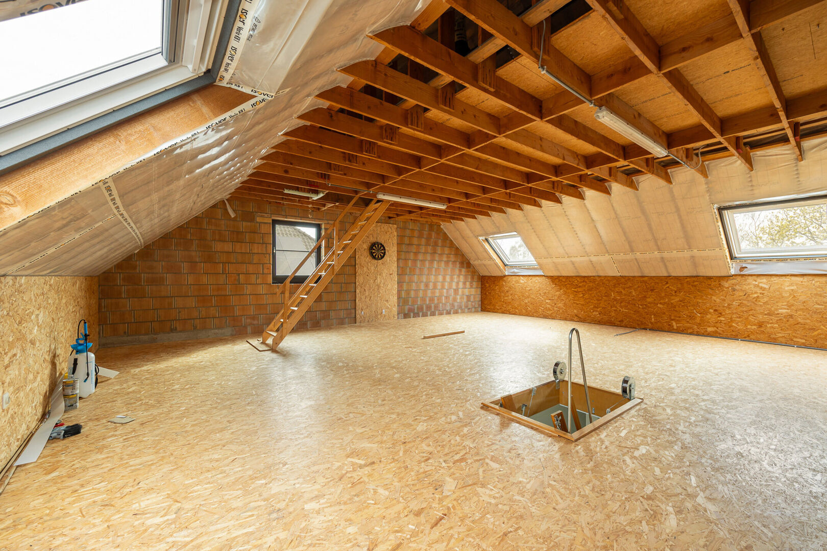 De 2e verdieping - momenteel uitgerust met een uitklapbare trap - biedt tal van uitbreidingsmogelijkheden. Van daaruit is er nog een vaste trap naar de zolder, waar alle technieken zijn ondergebracht.