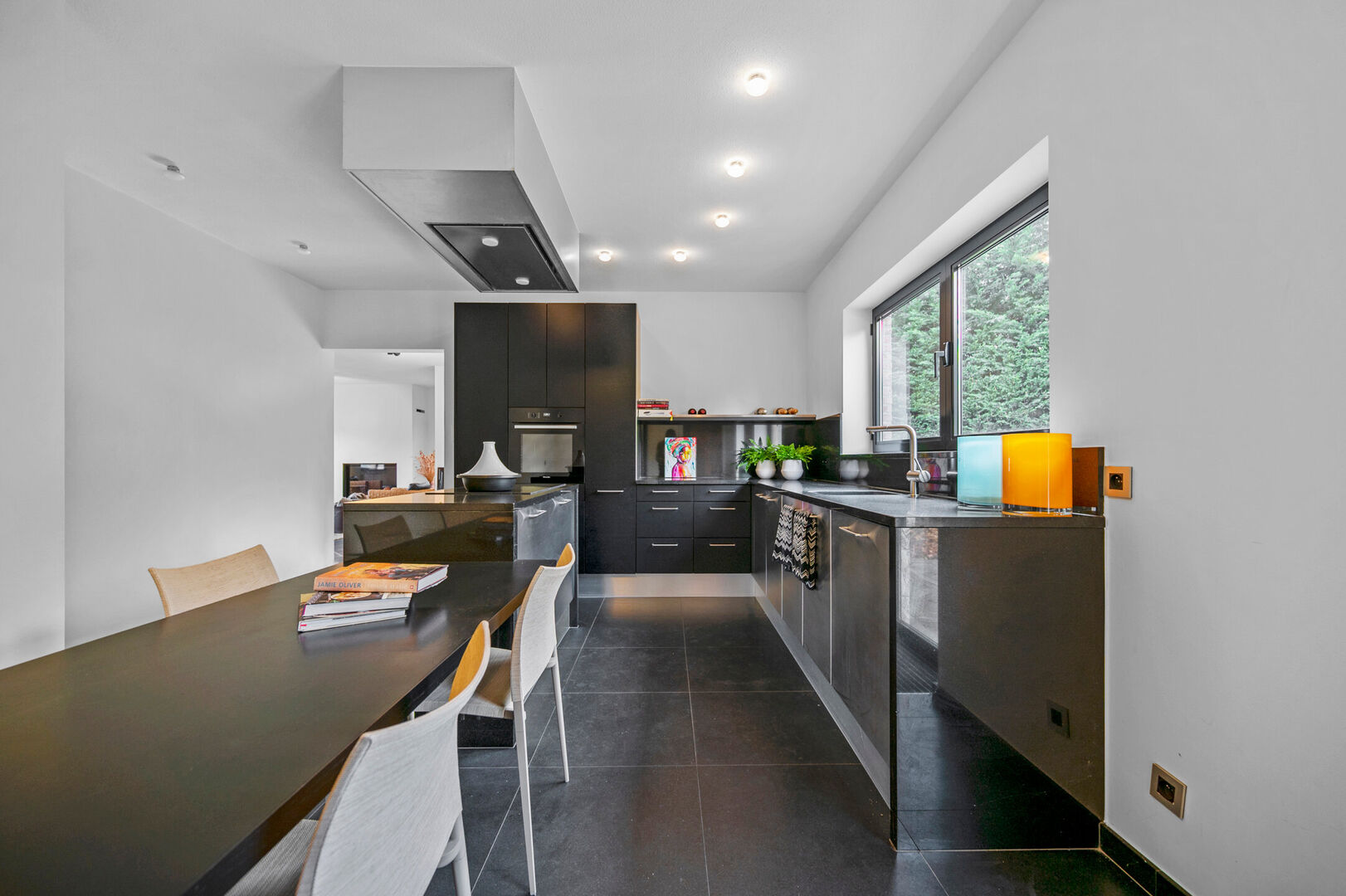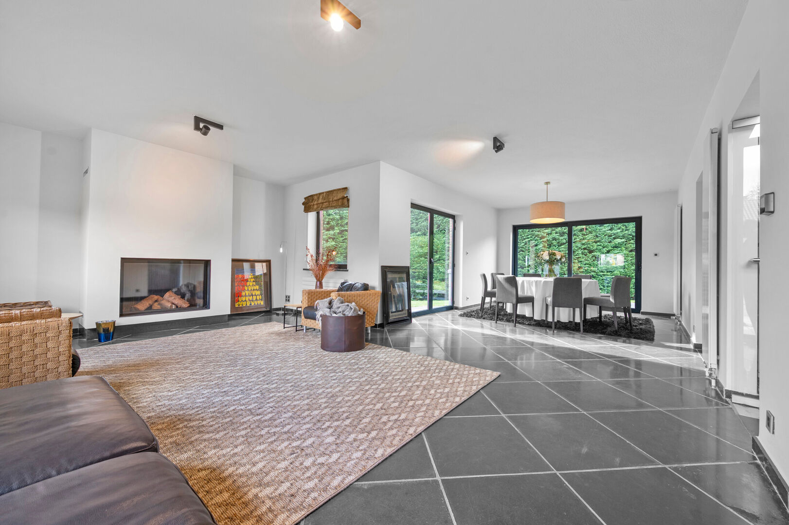 Met een bewoonbare oppervlakte van 364 m² biedt dit pand verrassend veel leefruimte. De afwerking getuigt van kwaliteit: parketvloeren, natuursteen, strakke houtkachel in de living, en hoge afwerkingsgraad in keuken en badkamer.